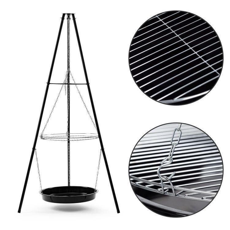 Kamin za dvorište sa visećom rešetkom – ModernHome Kamin za dvorište brenda ModernHome odlikuje se stabilnom metalnom konstrukcijom koja obezbeđuje sigurnost prilikom pripreme obroka. Njegova konstrukcija omogućava roštiljanje direktno iznad vatre ili iznad priloženog kamina. Velika površina za roštiljanje osigurana je hromiranom rešetkom prečnika 45 cm. Visina rešetke u odnosu na kamin podešava se pomoću lanca, što omogućava lako prilagođavanje i optimalnu pripremu hrane. Proizvođač: ModernHome Pakovanje: Proizvod je upakovan u posebno ojačanu transportnu kutiju, svi elementi roštilja su propisno osigurani kako bi se sprečila oštećenja tokom transporta. Dimenzije pakovanja su 51x51x11 cm, a težina 5 kg. Ostale informacije: Šifra proizvođača: 19432 Stanje proizvoda: nov
