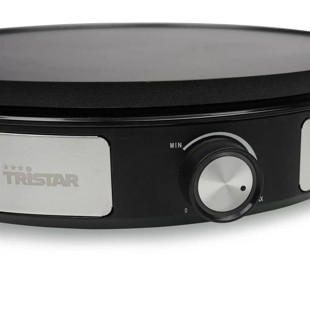 Poseduje nelepljivu ploču prečnika 33 cm, što olakšava pečenje i čišćenje nakon upotrebe. Podesivi termostat omogućava kontrolu temperature prema vrsti testa i željenom stepenu pečenja, dok maksimalna temperatura od 190°C obezbeđuje efikasnu pripremu. U pakovanju se nalazi i špatula za okretanje, za još lakše korišćenje.